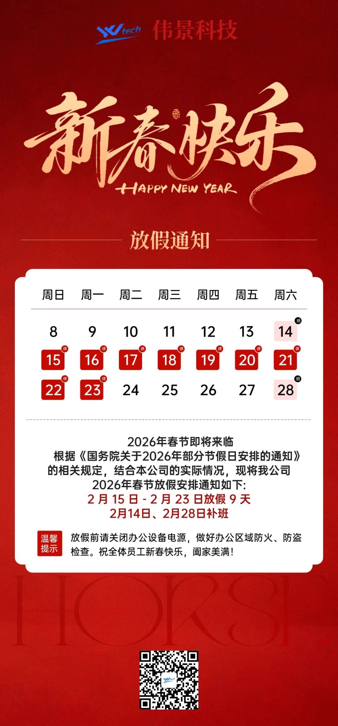 放假通知丨伟景科技祝大家新春快乐,马年大吉!